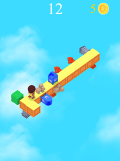 The Street is an awesome casual arcade game with fantastic 3D graphics. The game will test your patience and ability of quick-paced thinking while having to avoid obstacles on a course. As soon as you see an obstacle in front you have to click to rotate the street, in order to avoid it – or fall to your doom, it all depends on your reaction time. You control one of several acquirable avatars, and walk him through the thin street of blocks forming in front of him. Don’t forget to collect coins in your way, as this will allow you to buy more live and to keep going after making a mistake. Avoid the obstacles and unlock new cool looking 3D avatars. Play The Street now for free!